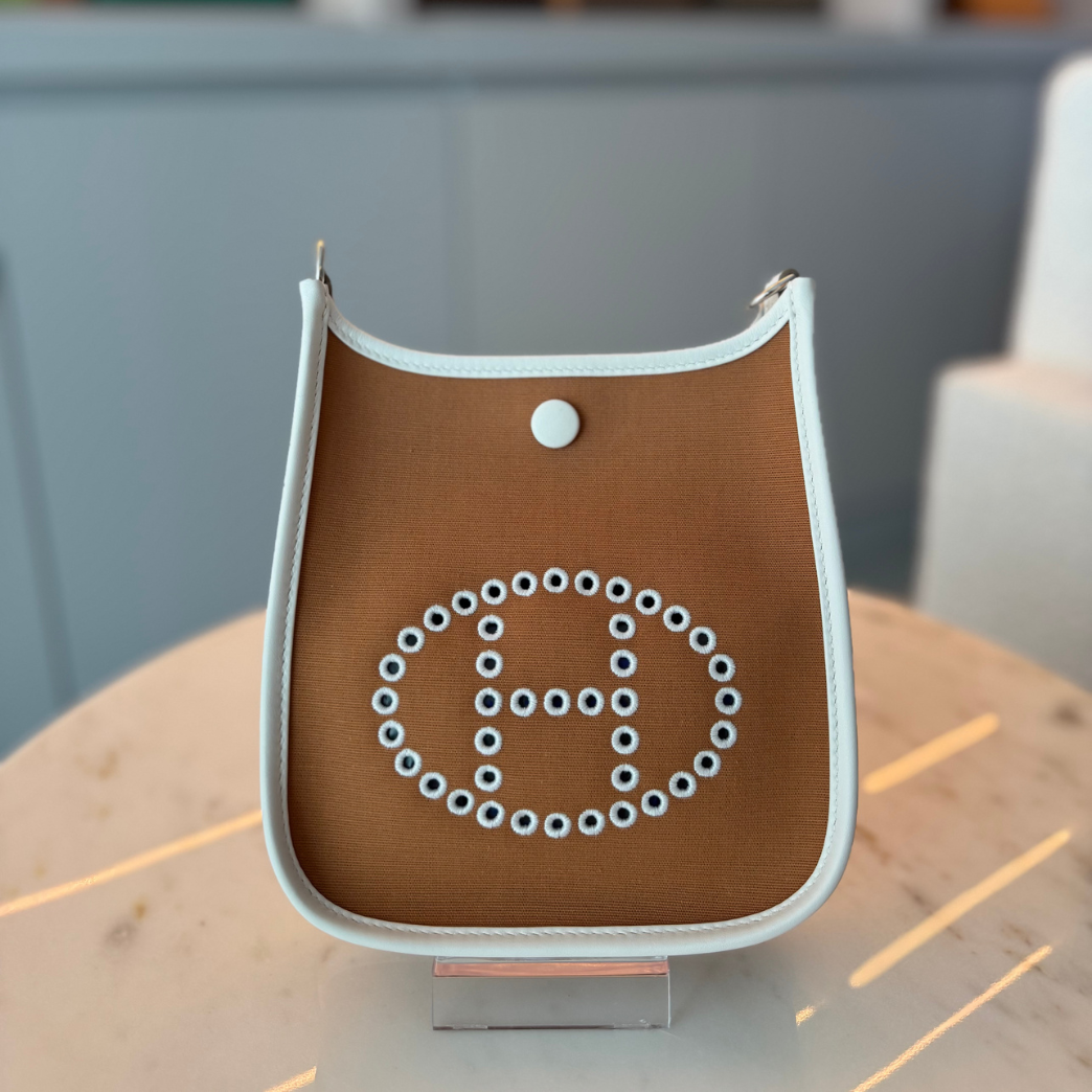 Hermès Evelyn 19 (Mini) Gold and Craie Toile Canvas and Swift