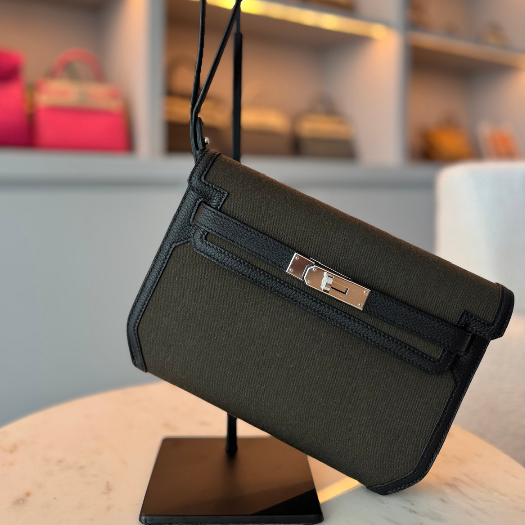 Hermès Kelly 25 Vert Militaire Toile Canvas and Clemence